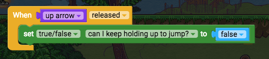- Set true/false can I keep holding up to jump? (variables)