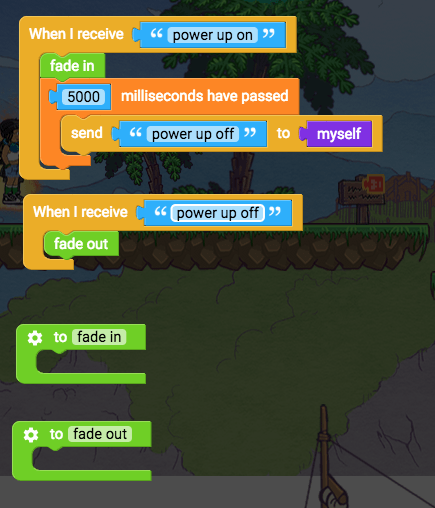 - Put fade out in “when I receive power up off”