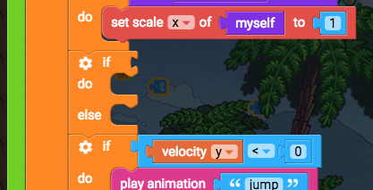 Then the rest of the blocks dealing with jumping, falling, running, and idle can all be dragged into this “else” section.