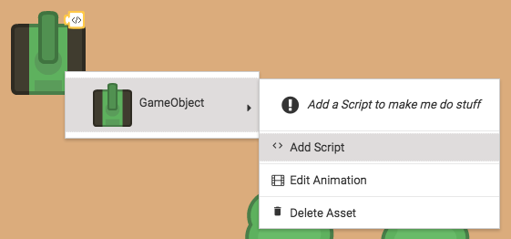 From inside your level, find a character (or any game object) that you want to use as your top-down player. Right-click on it and select Add Script.