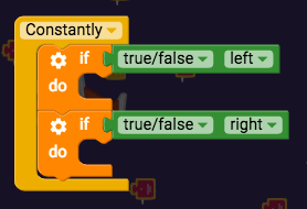 Grab the "Constantly" block (from Events), two "if" blocks (from Control Flow), "true/false left"(from Variables), and "true/false right" (from Variables).