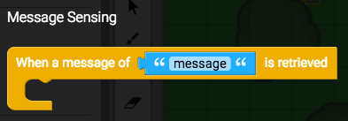 Next we'll get the message receivers working. The events that you're using to control the object will need to be swapped out with "When a message of message is retrieved" blocks (from Events).