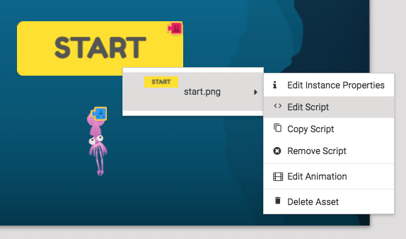 Let's add script to the start button so you can begin your game.