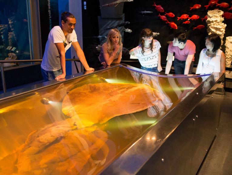 Colossal squid exhibition, 2015. Photographed by Michael Hall. Te Papa.